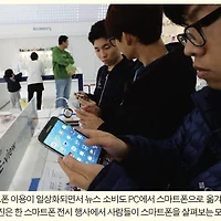 를 기록하고 있고, 대체로 종이 신문을 열독하는 사람은 PC 인터넷이나 스마트폰을 통한 뉴스 이용도 병행하고 있다. 또한 젊은 층일수록 종이 신문은 읽지 않고 인터넷 포털 뉴스나 스마트폰을 이용하는 경향을 감안할 때, 이런 조사결과는 당연한 귀결로 보인다. 다만 종이 신문 외에 PC 인터넷이나 스마트폰에서 종이 신문 기사를 얼마나 많이 읽고 있는지는 의문이다. 정보통신정책연구원(KISDI)의 ‘2012년 한국미디어패널조사’ 결과는 이에 대한 해답을 제시하고 있다. 이 조사에서는 실제 하루 평균 신문기사를 종이 신문, 데스크톱PC, 스마트폰 등 각 매체별로 어느 정도나 읽었는지 질문했다. 그 결과 응답자들(n=5,000명)의 하루 평균 신문 기사 열독시간은 20.8분이며, 매체별 신문 열독시간 점유율은 종이 신문이 64.9%로 여전히 가장 높았다. 데스크톱PC, 스마트폰 등 전자매체의 점유율은 35.1%였다. 특히 스마트폰에서 신문기사를 이용한 시간은 한 사람당하루 평균 1.1분에 점유율 5.5%를 기록해 스마트폰을 이용한 신문기사 이용률은 극히 제한적임을 보여준다.